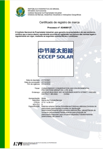 Ì«ÑôÄܹ«Ë¾ÏÂÊôÕò½­¹«Ë¾¡°ÖнÚÄÜÌ«ÑôÄÜ CECEP SOLAR¡±É̱êÔÚ°ÍÎ÷ÀÖ³É×¢²á