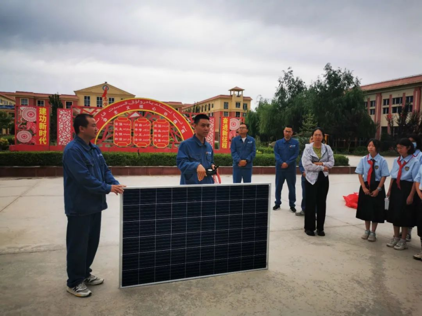 宣讲历程中,,,舒奇蒙电站清静员陈旭从电的简朴熟悉、电的危害、生涯中清静用电、雷电危害与提防、清静用电顺口溜等方面开展宣讲,,,通过意见意义图文及视频的形式,,,由浅入深地为学生们开展了一堂生动的电力科普课程,,,并时时通过互动问答加深学生对所学知识的印象,,,让学生们明确了什么是电,,,怎样清静用电,,,阻止用电危险。。。。随后,,,学生们来到操场,,,由阿克苏党支部党员郝雪峰向学生们举行现场演示太阳能发电的历程,,,让学生相识光伏发电基来源理的同时,,,也起源认了生涯用电泉源。。。。