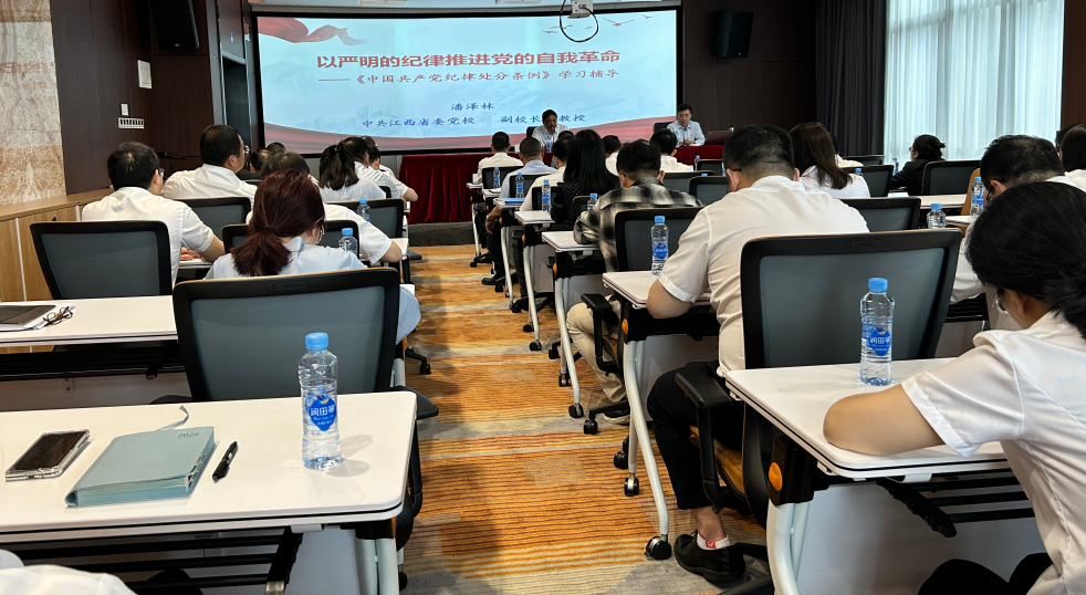 为深入学习贯彻习近平总书记关于增强党的纪律建设的主要叙述,,,,,推动党纪学习教育取得实着实在效果,,,,,5月21日,,,,,江西公司党委组织开展学习贯彻《中国共产党纪律处分条例》专题解读培训,,,,,约请江西省委党校副校长潘泽林教授作专题向导。。。。。。。公司向导班子成员加入专题向导。。。。。。。